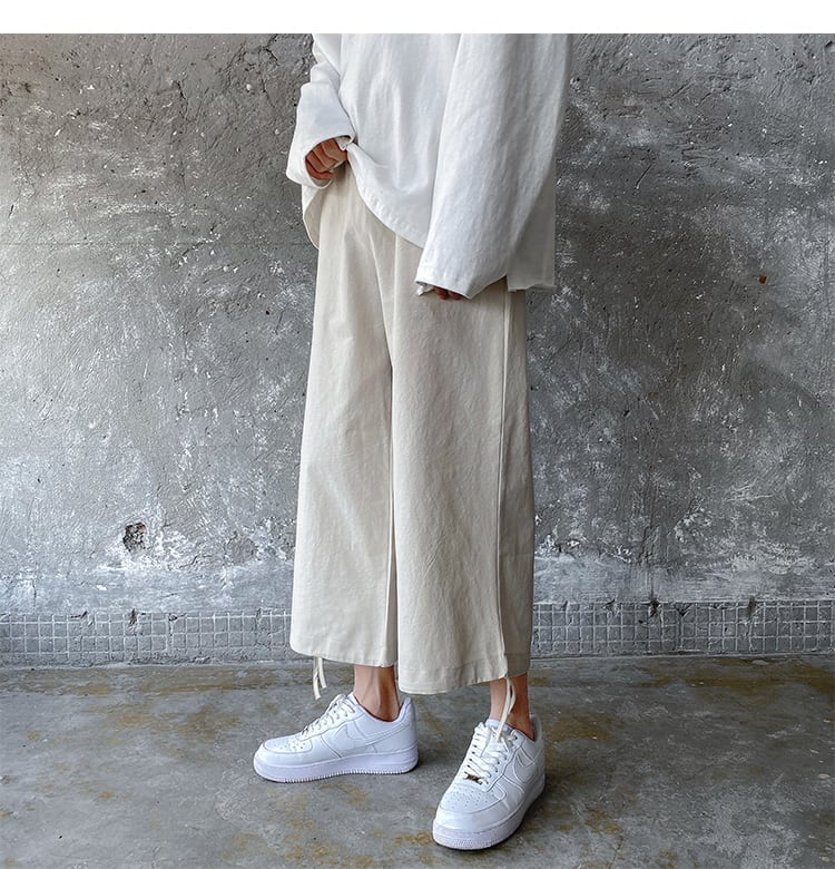 コットンパンツ ボトムス パンツ ルームウェア ズボン 部屋着 ワイドパンツ ストレートパンツ アンクル丈 綿 リネン コットン シンプル カジュアル おしゃれ こなれ感 ラフ ルーズ 個性的 クール 抜け感 無地 オールシーズン 2022 20代 女性用 学生 お出かけ お泊まり 休日 アウトドア リゾート 海 プール ガーデン 着回し 普段使い スタイル 楽ちん 体系カバー M L XL 2XL 3XL ゆったり ゆる 黒 オフホワイト