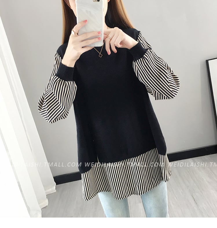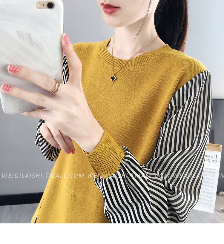 トップス セーター 袖あり 長袖 ラウンドネック 襟なし 切り替えデザイン ドッキング かわいい 大人可愛い カジュアル 主役級 ストライプ 秋 冬 10代 20代 30代 レディース 女性用 ママ オフィス ビジネス OL 通勤 学生 通学 デート お出かけ 公園デビュー 休日 普段使い S M L XL 白 ホワイト 黒 ブラック 赤 レッド 黄色 イエロー