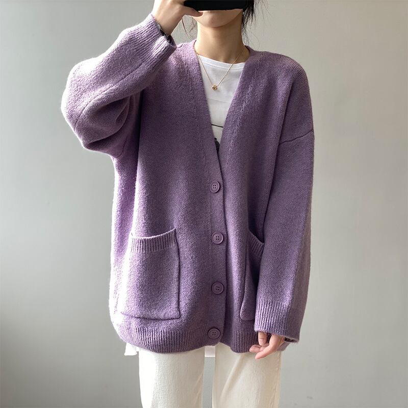 トップス カーディガン 袖あり 長袖 ボリューム袖 ドロップショルダー 萌袖 Vネック もこもこ モコモコ ふわふわ 前開き かわいい 大人可愛い シンプル カジュアル こなれ感 ラフ ルーズ 無地 春 秋 冬 10代 20代 30代 レディース 女性用 ママ 学生 通学 デート お出かけ 公園デビュー 女子会 お泊まり 休日 アウトドア 旅行 普段使い 重ね着 楽ちん 暖かい S M L XL 2XL 白 ホワイト 黒 ブラック 赤 レッド 紫 水色 くすみカラー