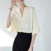 トップス シャツ ブラウス カットソー 白シャツ 白トップス 袖あり 5分袖 五分袖 フレアスリーブ スタンドカラー 大人可愛い きれいめ シンプル 大人 上品 おしゃれ お洒落 大人可愛い 大人女子 こなれ感 メンズライク エレガント 無地 春 夏 秋 入学式 入園式 卒業式 卒園式 謝恩会 結婚式 二次会 20代 30代 40代 ビジネス OL 通勤 デート お出かけ 女子会 休日 パーティー イベント ホテル レストラン 着回し 普段使い モテ フリーサイズ 白 ホワイト
