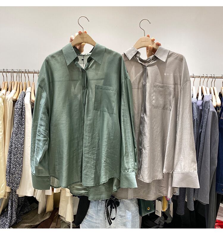 透け感なるシンプルなシャツはオールシーズン大活躍