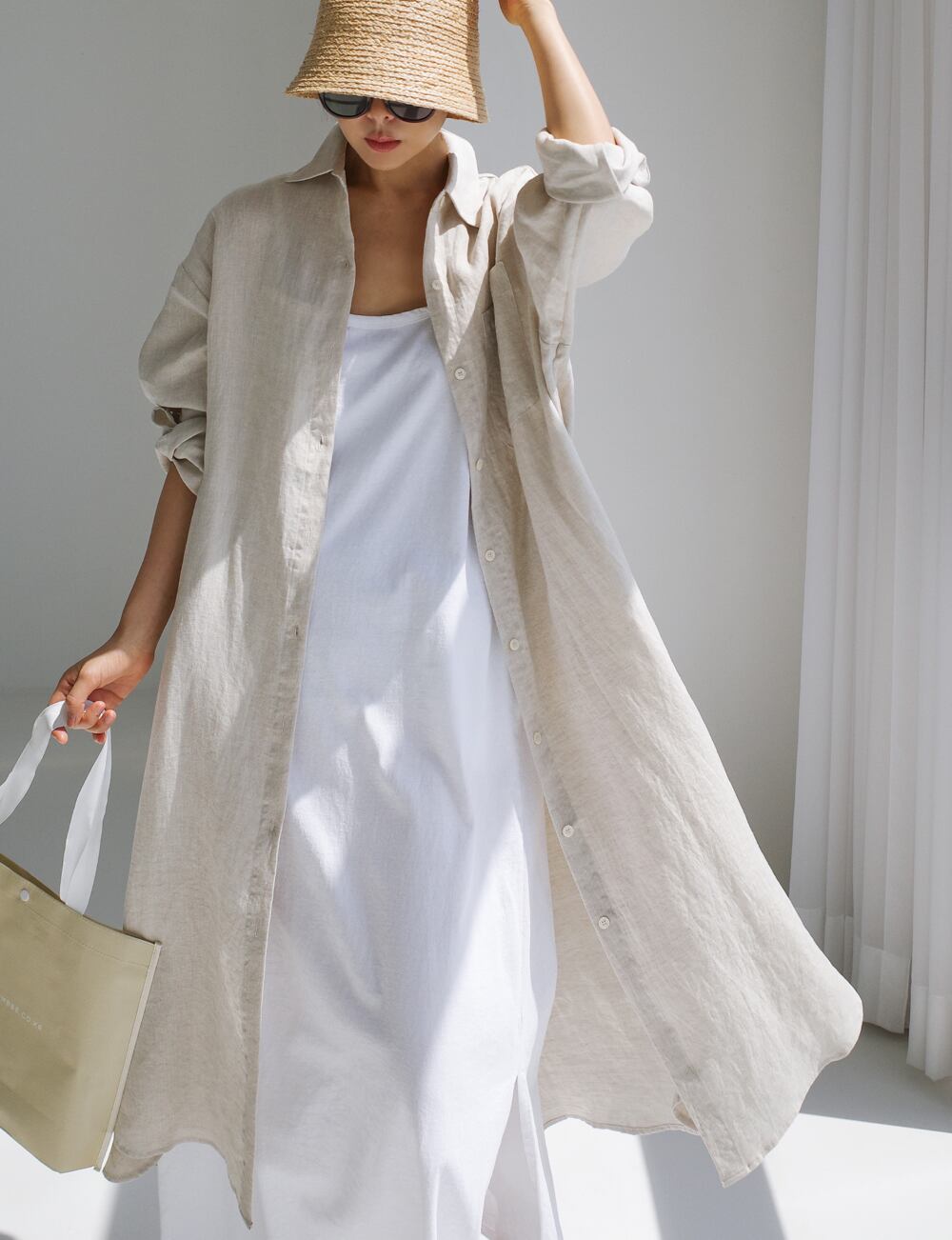 ワンピース シャツワンピース 膝下 ミモレ ミモレ丈 袖あり 長袖 襟付き スリット サイドスリット 前開き 麻 リネン 大人可愛い シンプル カジュアル 上品 おしゃれ エスニック エキゾチック こなれ感 ラフ ルーズ 抜け感 無地 春 夏 秋 10代 20代 30代 40代 レディース 女性用 OL デート お出かけ 女子会 休日 イベント リゾート 旅行 海 プール ホテル ガーデン 着回し 普段使い 重ね着 S M L XL 黒 ブラック ベージュ