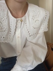 甘すぎないパンチンギレースがビッグカラーになったブラウス