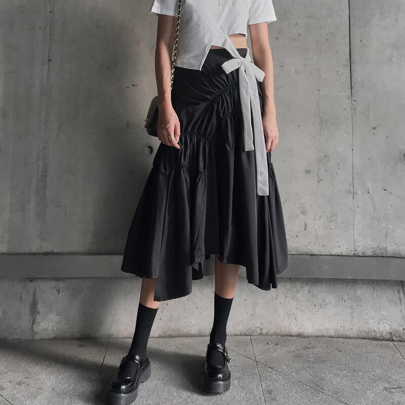 スカート ボトムス フレアスカート 膝下 ミモレ ミモレ丈 フレア アシンメトリー ハイウエスト 大人可愛い 大人 上品 おしゃれ 大人女子 こなれ感 個性的 モード系 エレガント 主役級 存在感 無地 オールシーズン 謝恩会 披露宴 冠婚葬祭 20代 30代 40代 レディース 女性用 デート お出かけ 女子会 休日 パーティー イベント リゾート 旅行 ホテル レストラン フリーサイズ 白 ホワイト 黒 ブラック