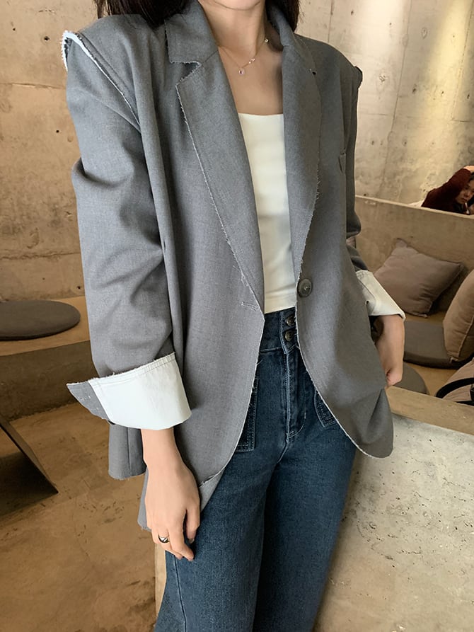 切りっぱなしの裾と個性的なポケットデザインのデニム