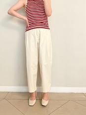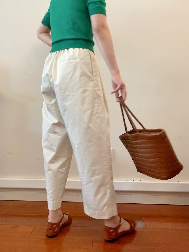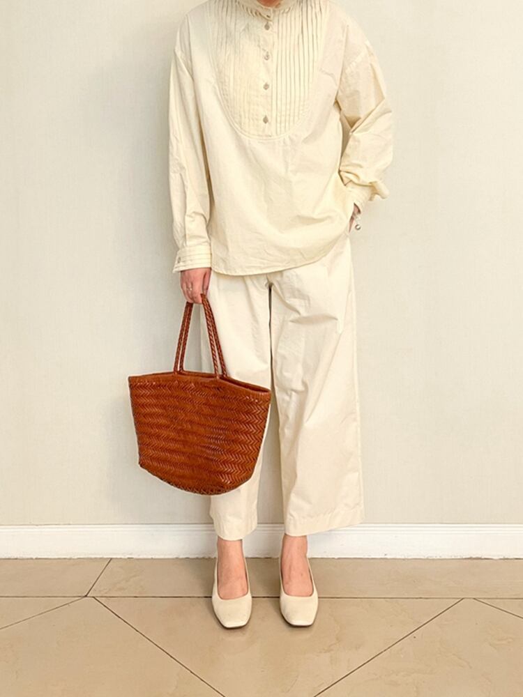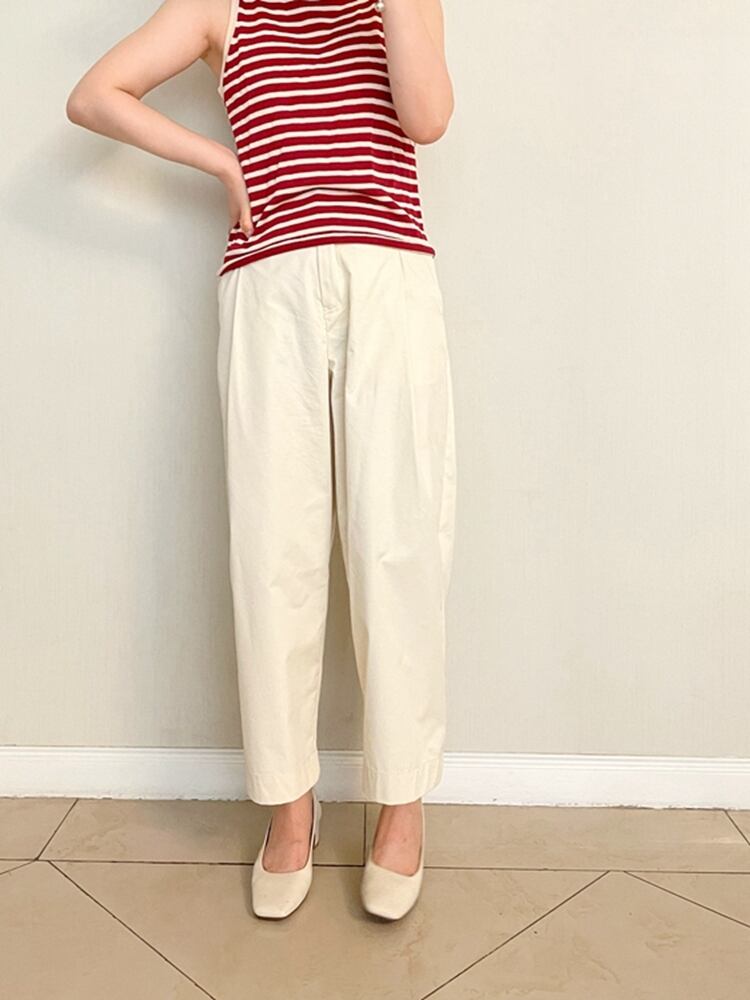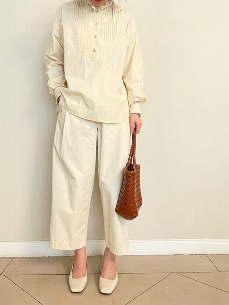 ナチュラルな雰囲気のオフホワイトのワイドストレートパンツ