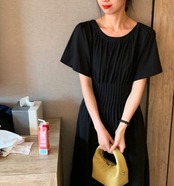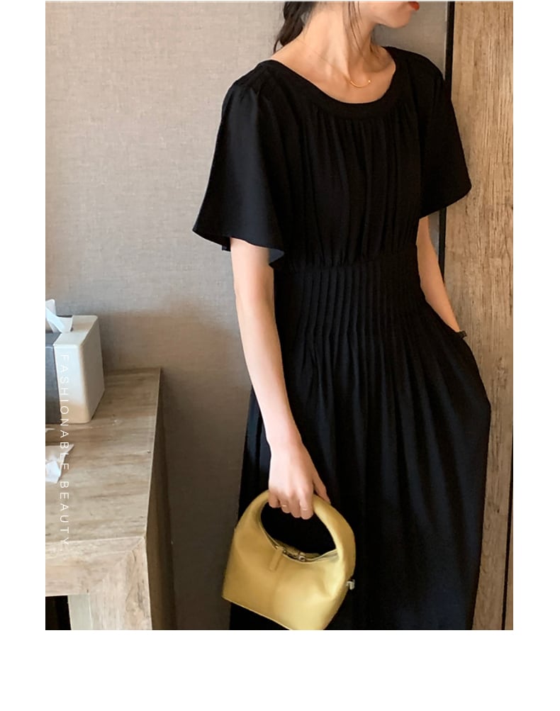 ワンピース ロングスカート ワンピドレス ロング丈 半袖 ラウンドネック フレア ハイウエスト ウエストゴム 異素材MIX 大人可愛い きれいめ シンプル 大人 上品 おしゃれ 大人可愛い 大人女子 クール 無地 春 夏 秋 20代 レディース お出かけ 女子会 休日 アウトドア パーティー イベント リゾート 旅行 ホテル レストラン ファッション スタイル モテ 体系カバー 新作 S M ブラック