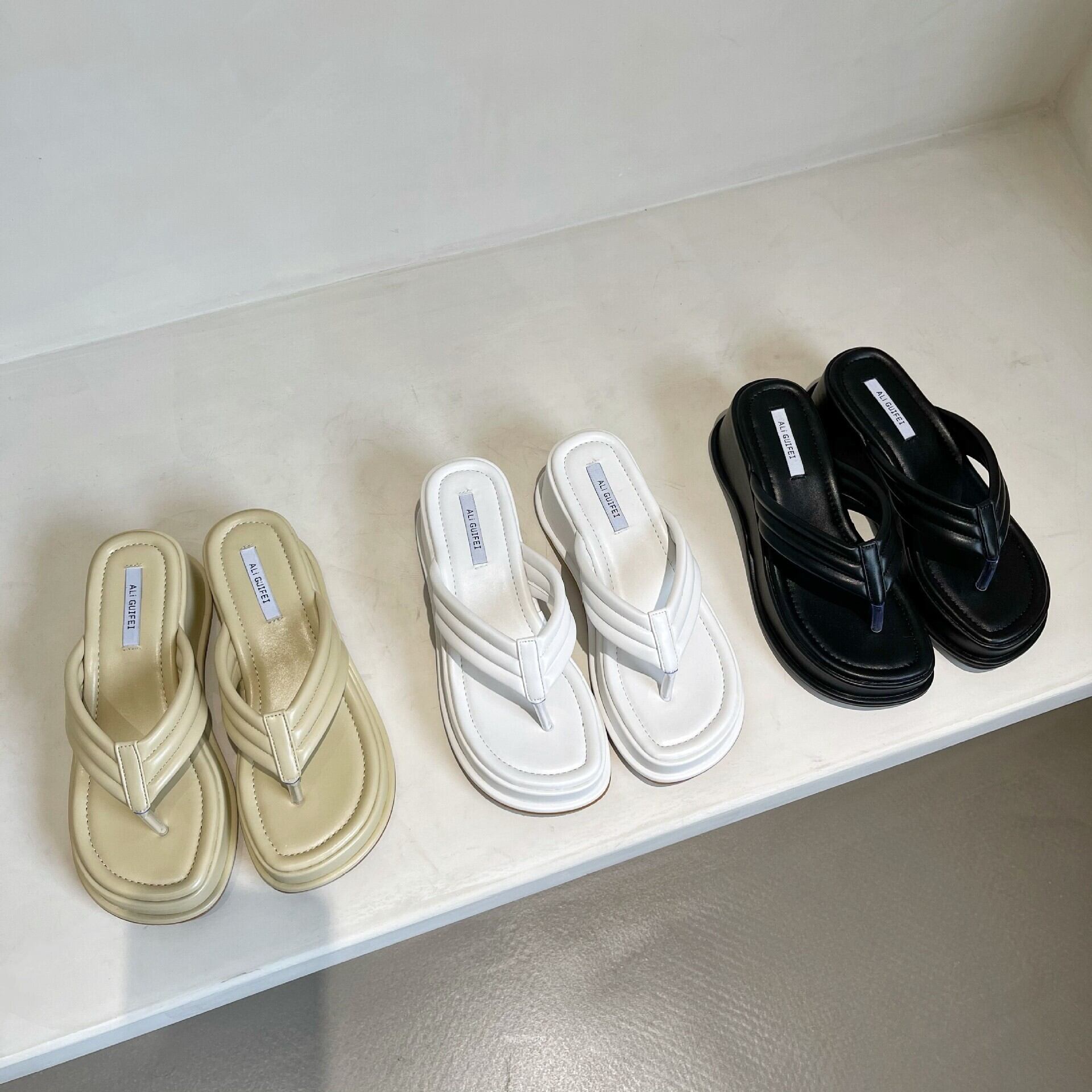 ブラック、ホワイト、グリーンの3カラーから選べる、厚底ビーチサンダル。