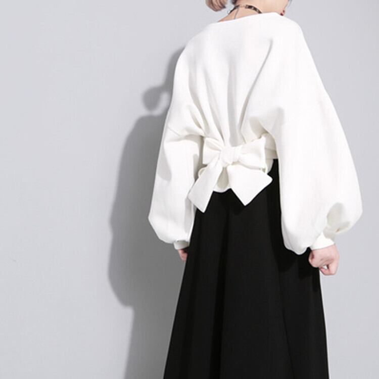 リボンがインパクトあるトップス。