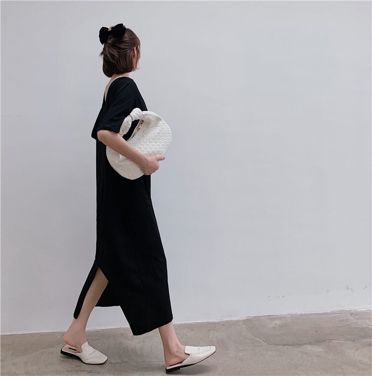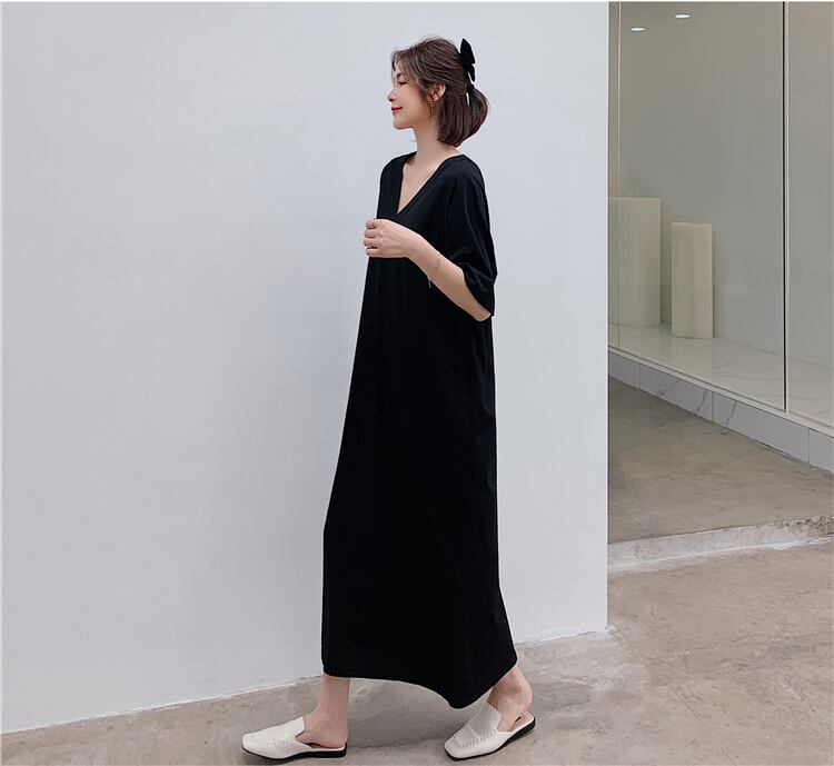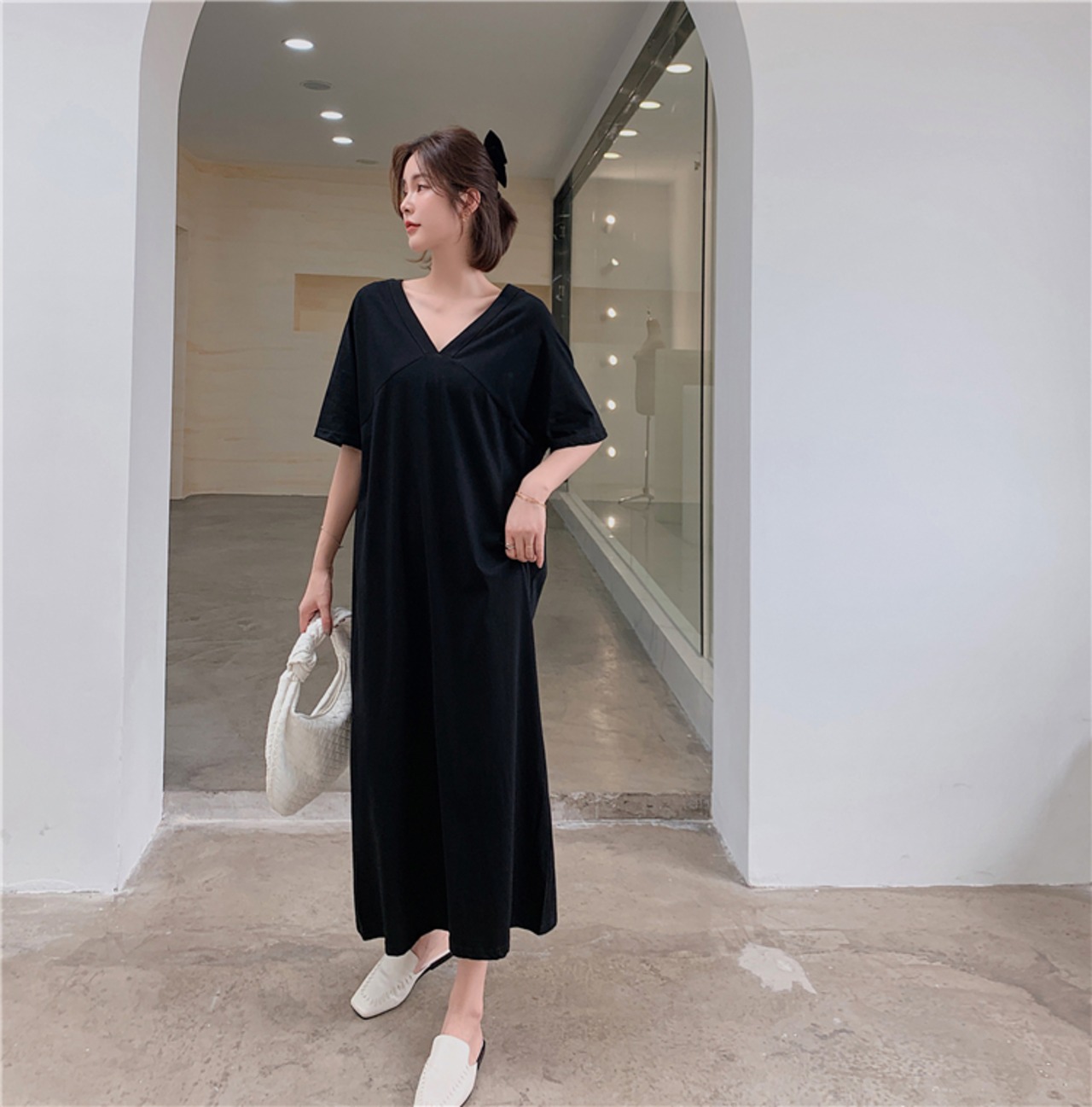 ワンピース Tシャツ ロング ロング丈 袖あり 半袖 Vネック スリット バックスリット バックシャン バックコンシャス かわいい 大人可愛い シンプル カジュアル おしゃれ こなれ感 ラフ 抜け感 無地 春 夏 10代 20代 30代 40代 レディース 女性用 ママ 学生 デート お出かけ 公園デビュー 女子会 お泊まり 休日 リゾート 旅行 海 プール 普段使い L XL 2XL 3XL 大きいサイズ ゆったり 黒 ブラック ピンク