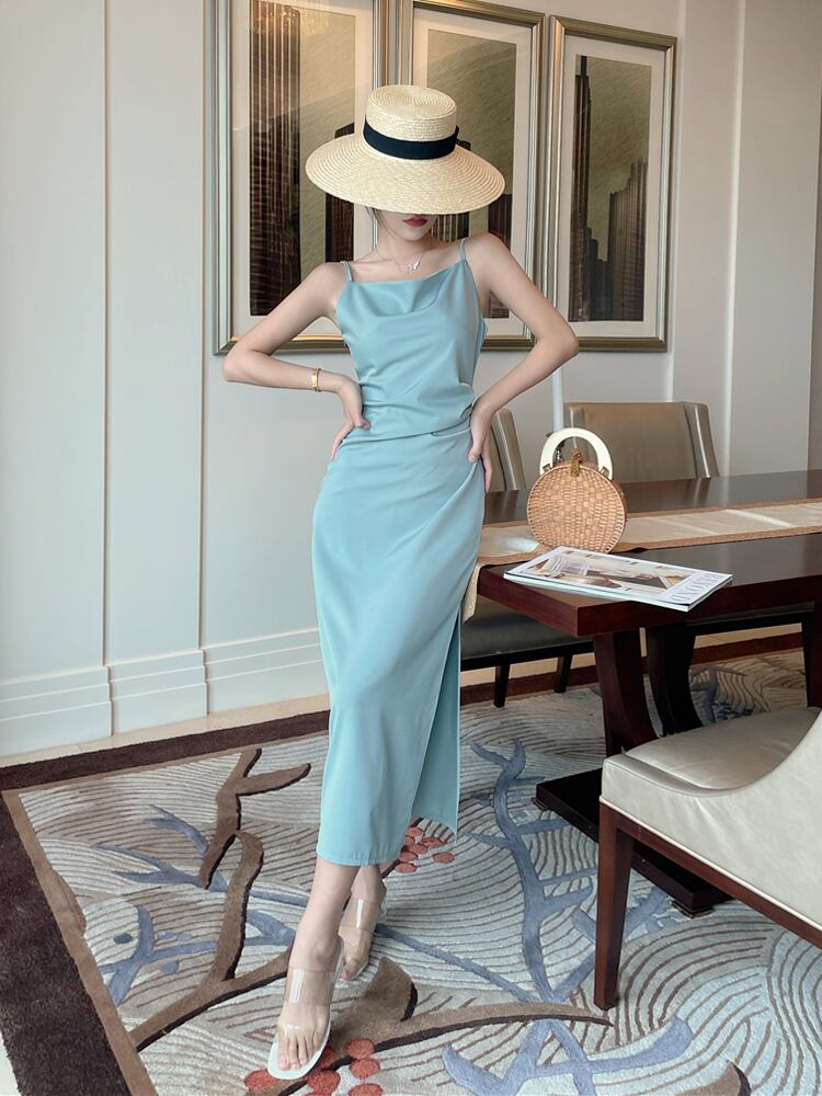 光沢感のあるドレス。