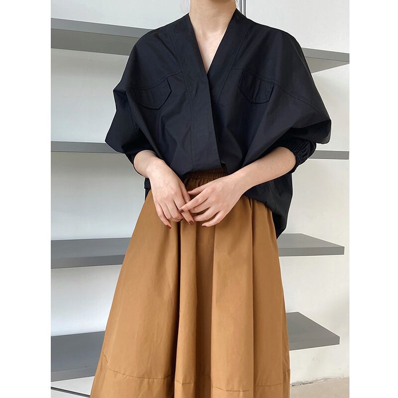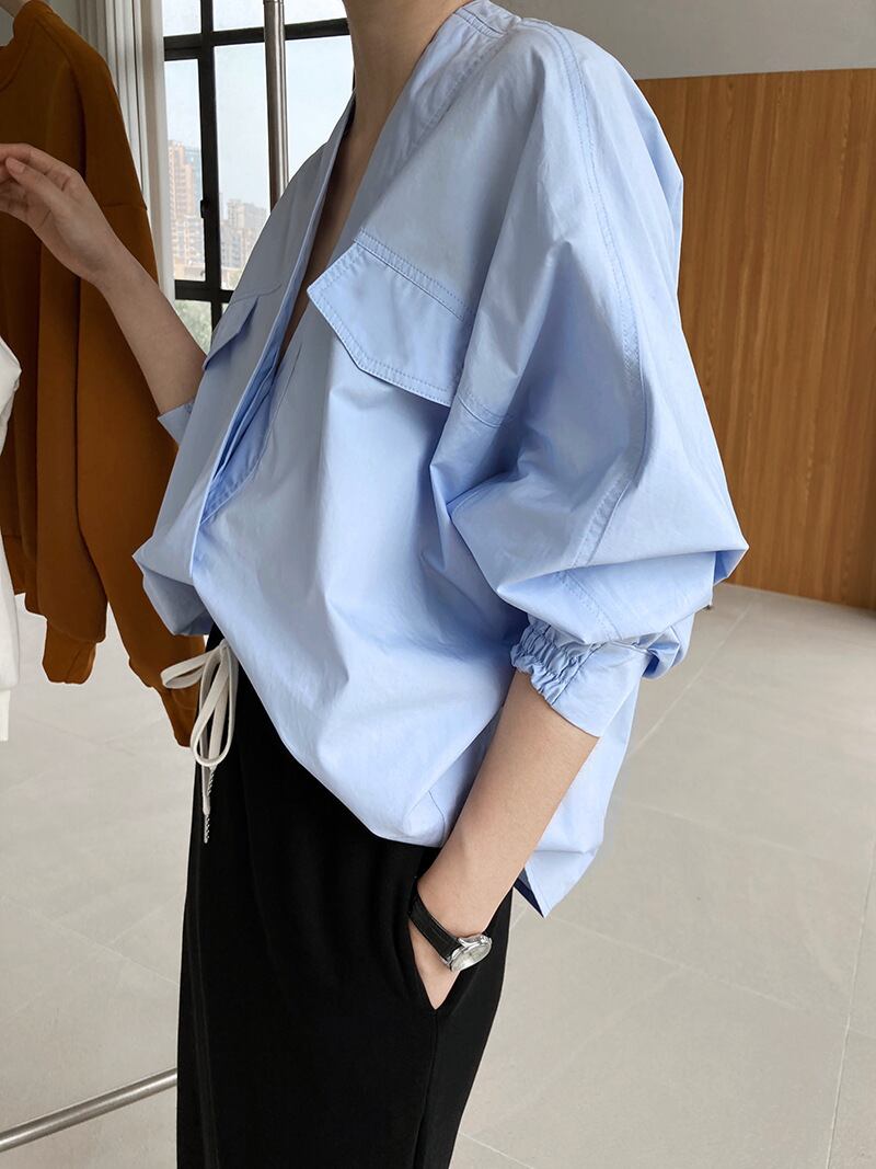 Vネックでスッキリ着用できるトップス。