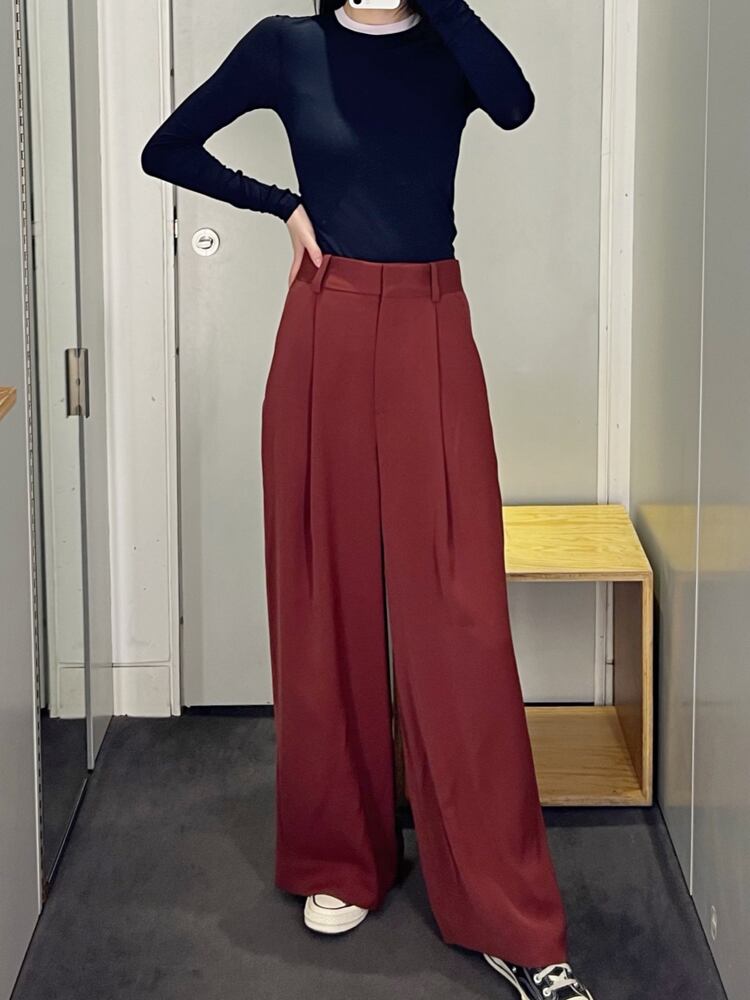 ボトムス パンツ ワイドパンツ ストレートパンツ カラーパンツ ロング ロング丈 ワイド ハイウエスト シンプル 大人 おしゃれ かっこいい レトロ こなれ感 メンズライク マニッシュ クール モード系 モダン とろみ感 無地 春 夏 秋 冬 オールシーズン 10代 20代 30代 40代 レディース 女性用 オフィス ビジネス OL 通勤 学生 通学 デート お出かけ 女子会 休日 ホテル レストラン XS S M L ワインレッド