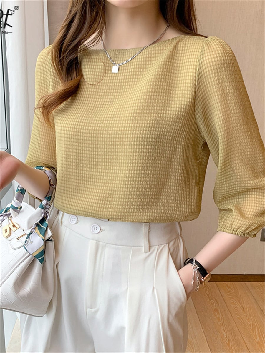 七分袖のトップス。