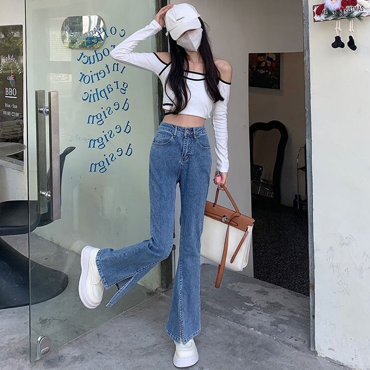ボトムス レディース デニムパンツ フレアパンツ ロング丈 スリム ワイド センタースリット ポケット ハイウエスト デニム かわいい 大人可愛い きれいめ シンプル カジュアル 大人 上品 お洒落 かっこいい レトロ 大人女子 こなれ感 マニッシュ ガーリー 主役級 抜け感 無地 春 夏 秋 20代 30代 40代 ママ 学生 通学 デート お出かけ 女子会 休日 旅行 着回し 普段使い 重ね着 オルチャン 美脚 脚長 定番 トレンド 流行 インスタ映え M L XL 2XL 3XL 4XL ブルー