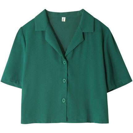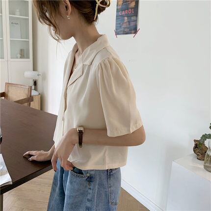 ショート丈のシャツ。