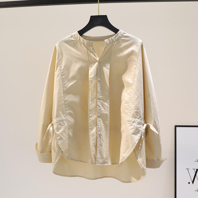 トップス シャツ ブラウス 白シャツ 白トップス 袖あり 長袖 クルーネック 襟なし リボン 前開き 大人可愛い シンプル カジュアル おしゃれ レトロ こなれ感 ラフ ガーリー 無地 春 秋 冬 10代 20代 30代 40代 レディース 女性用 ママ オフィス ビジネス OL 通勤 学生 通学 デート お出かけ 女子会 リゾート 旅行 海 高原 ホテル レストラン 普段使い S M L XL 2XL 白 ホワイト 黒 ブラック オフホワイト
