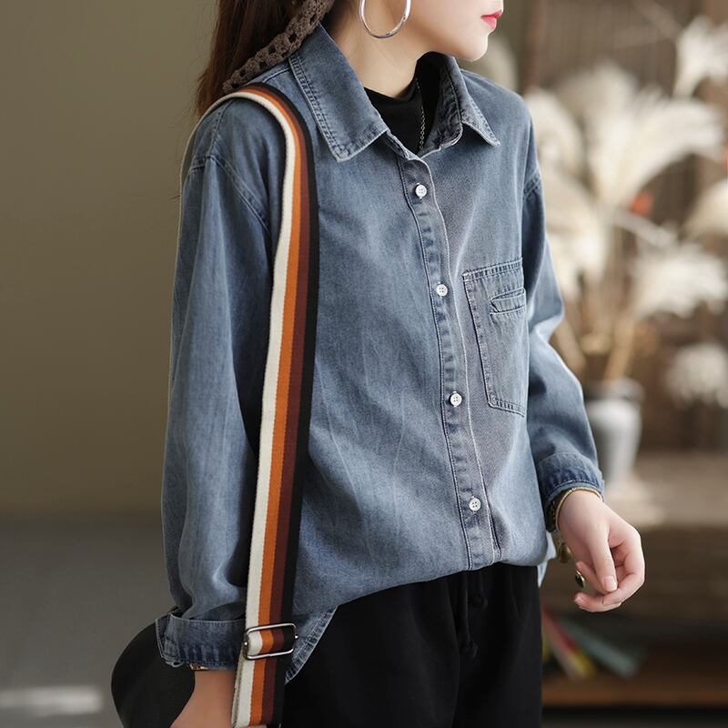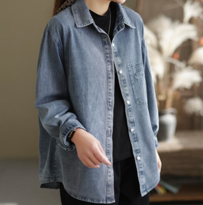 ゆるっと着用できるデニムシャツ。