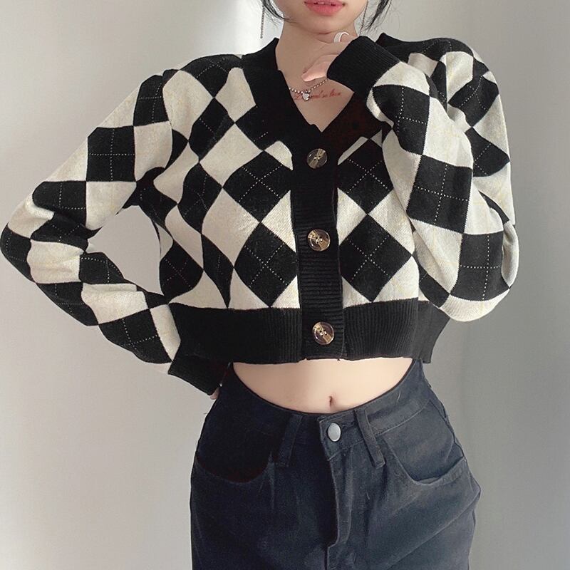 トップス レディース セーター カーディガン ショート丈 クロップド丈 袖あり 長袖 Vネック 襟なし スリム リブ 前開き リブニット ニット かわいい 大人可愛い きれいめ カジュアル 大人 上品 お洒落 レトロ 大人女子 こなれ感 ガーリー モダン 主役級 抜け感 アーガイル柄 春 夏 秋 20代 30代 40代 ママ 通勤 通学 デート お出かけ 女子会 休日 旅行 着回し 普段使い 重ね着 オルチャン モテ 定番 トレンド 流行 インスタ映え S M L ホワイト×ブラック