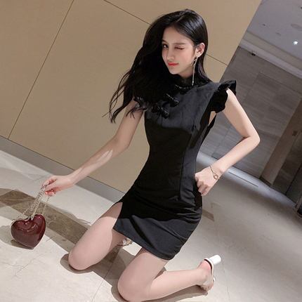 スプリットブラックショートスカート。