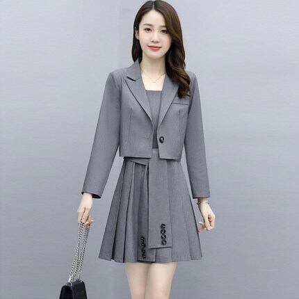 ジャケットとサスペンダーワンピースのセット。
