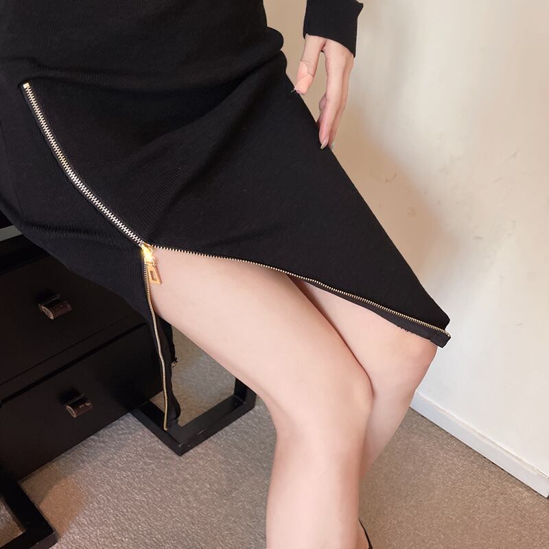 ジップが特徴的なワンピースドレス。