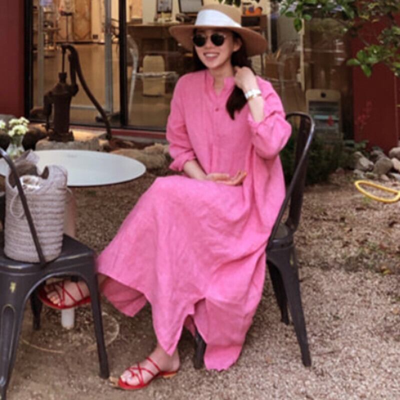 ワンピース レディース シャツワンピ リゾートワンピ スキッパーシャツ 膝下 マキシ丈 袖あり 長袖 キーネック スタンドカラー ワイド サイドスリット 大人可愛い シンプル カジュアル 大人 上品 お洒落 アジアン 大人女子 こなれ感 ラフ ルーズ 主役級 抜け感 無地 春 夏 秋 20代 30代 40代 ママ マタニティ 通勤 通学 デート お出かけ 女子会 休日 リゾート 旅行 海 着回し 普段使い 重ね着 楽ちん 体系カバー 定番 トレンド 流行 S M L XL ゆったり グレージュ ピンク
