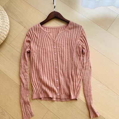 Vネックでスッキリ着用できるアイテム。
