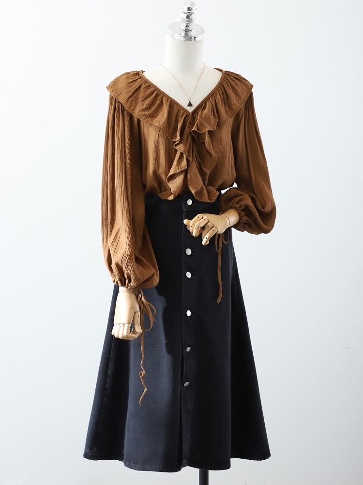 フレアなブラウスと合わせて上品に、Tシャツと合わせてカジュアルに着こなせる、着回しの効く1着です◎