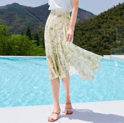 スカート ロングスカート ミモレ丈 フレア Aライン ウエストゴム 透け感 薄手 大人可愛い きれいめ シンプル 大人 上品 おしゃれ 大人女子 花柄 夏 10代 20代 レディース 通勤 学生 通学 デート お出かけ 女子会 休日 リゾート 普段使い ファッション モテ 新作 S M L XL イエロー