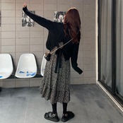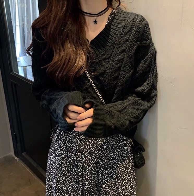 トップス ワンピース フレアワンピース ミモレ丈 長袖 Vネック フレア Aライン 編み込み ニット 2点セット かわいい 大人可愛い お洒落 大人女子 ラブリー キュート ガーリー 無地 柄 春 秋 冬 10代 20代 30代 レディース 女性用 学生 デート 女子会 休日 着回し 普段使い 重ね着 モテ S M L XL 2XL 3XL 4XL ブラック
