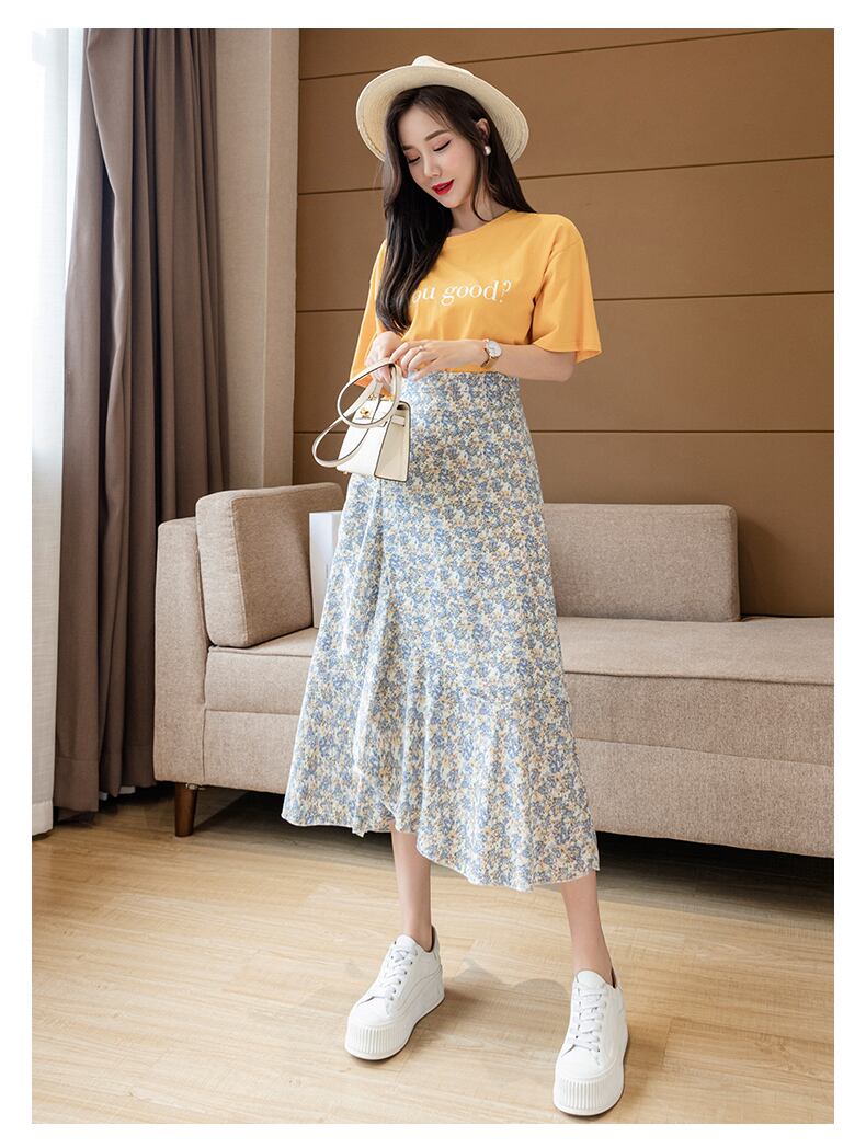 ブルーの小花が散りばめられた爽やかなフレアスカートです。