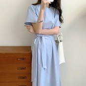 ワンピース レディース フレアワンピース 膝下 ミモレ丈 袖あり 半袖 ラウンドネック フレア ウエストリボン付き ウエストマーク 大人可愛い きれいめ シンプル カジュアル 大人 上品 お洒落 大人女子 こなれ感 ガーリー エレガント 主役級 フォーマル 抜け感 無地 春 夏 20代 30代 40代 ママ OL 通勤 通学 デート お出かけ 女子会 休日 旅行 着回し 普段使い 重ね着 オルチャン 体系カバー 定番 トレンド 流行 S M L XL ゆったり ライトブルー アプリコット