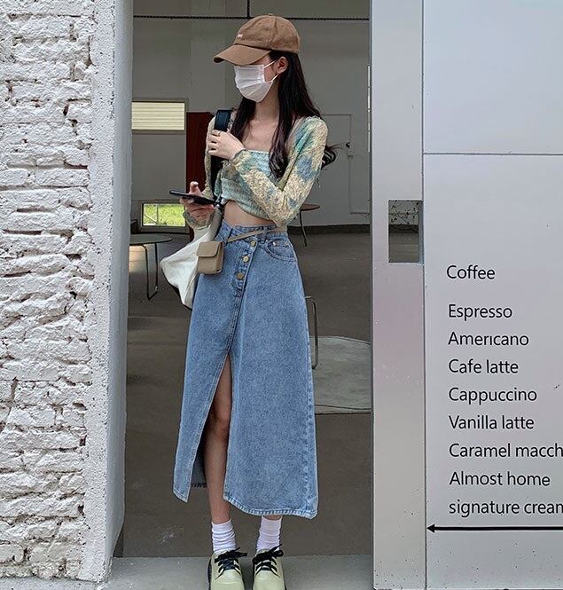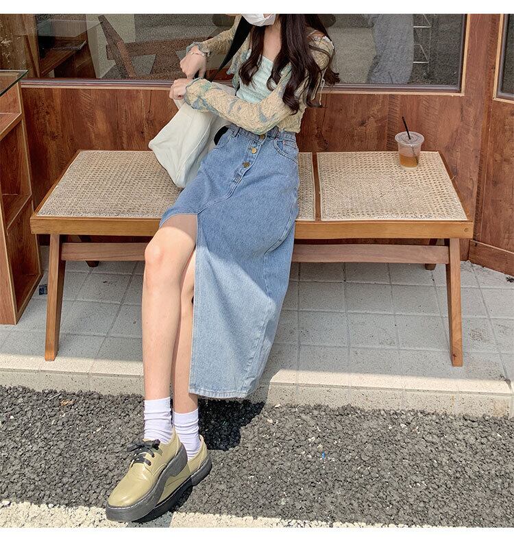 スカート デニムスカート ミモレ丈 ワイド Aライン スリット ポケット ハイウエスト デニム カジュアル セクシー おしゃれ 大人女子 こなれ感 ルーズ 個性的 クール 無地 春 夏 秋 2021 10代 20代 レディース 通勤 学生 通学 デート お出かけ 女子会 休日 普段使い ファッション スタイル モテ S M L XL 2XL 3XL 4XL ブルー
