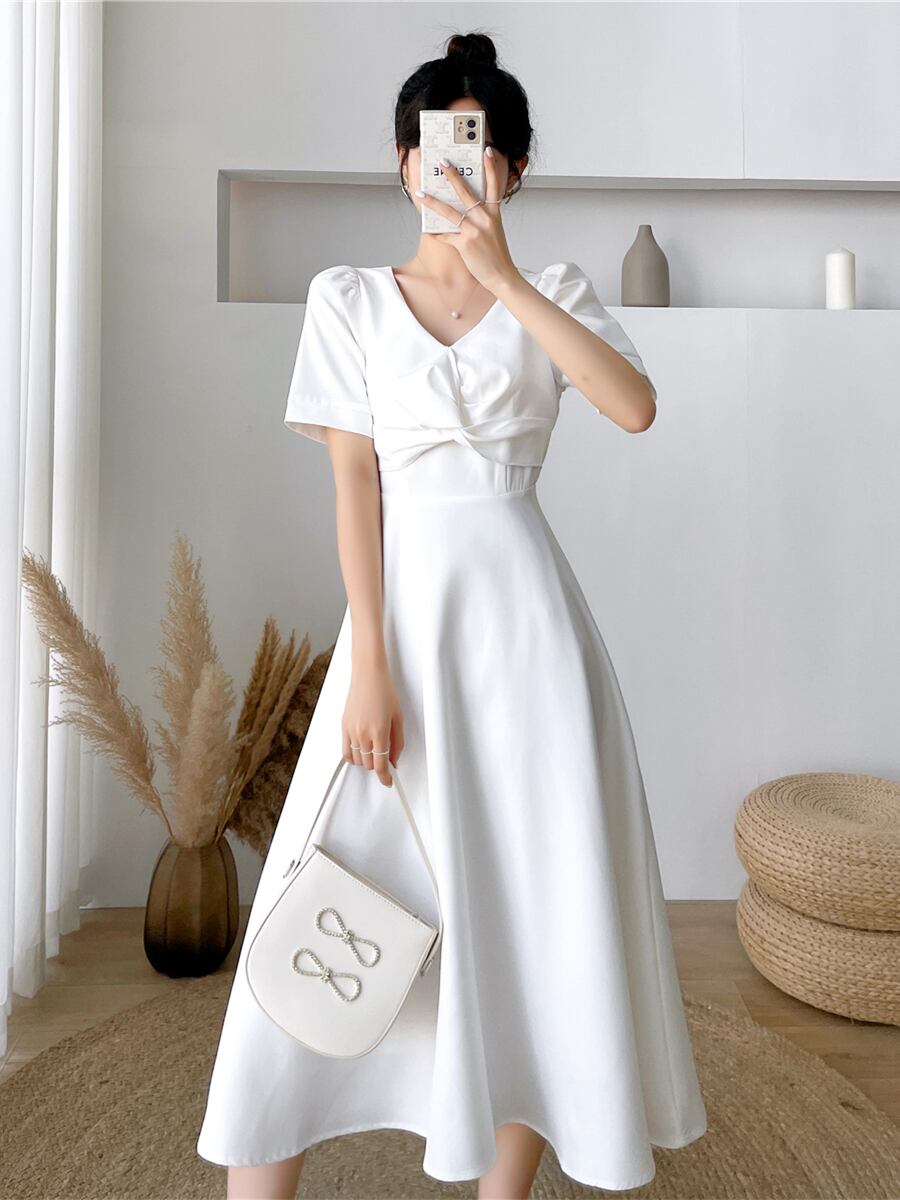 ワンピース 膝丈 ひざ丈 袖あり かわいい 大人可愛い きれいめ シンプル カジュアル 大人 上品 おしゃれ お洒落 かっこいい レトロ 大人女子 主役級 存在感 20代 レディース OL 学生 デート 女子会 着回し 普段使い ファッション コーデ スタイル モテ トレンド 流行 インスタ映え ホワイト ブラック