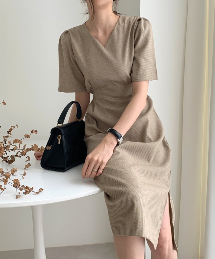 ワンピース 膝丈 ひざ丈 袖あり かわいい 大人可愛い きれいめ シンプル カジュアル 大人 上品 おしゃれ お洒落 かっこいい レトロ 大人女子 主役級 存在感 20代 レディース OL 学生 デート 女子会 着回し 普段使い ファッション コーデ スタイル モテ トレンド 流行 インスタ映え アプリコット カーキー