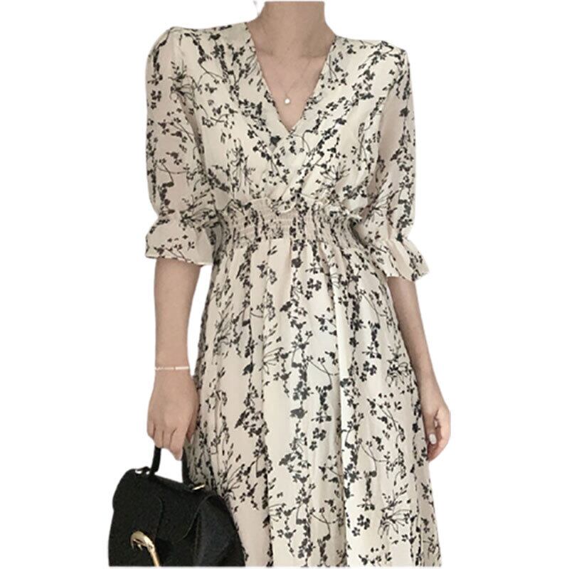 エレガントなプリントとデザインが秀麗なワンピースです。