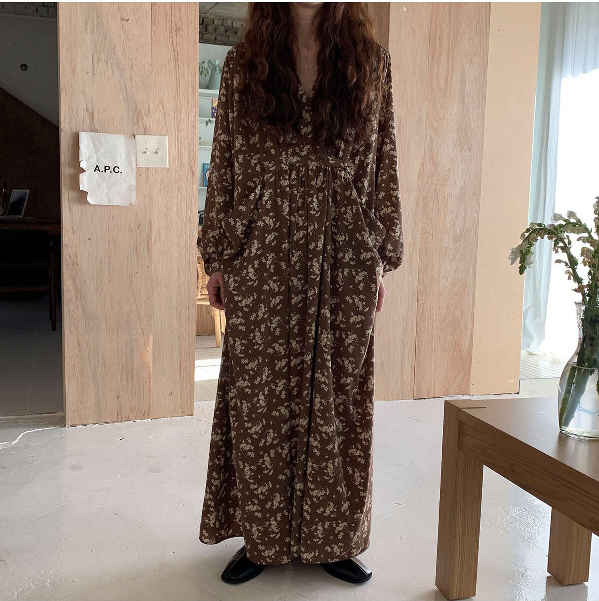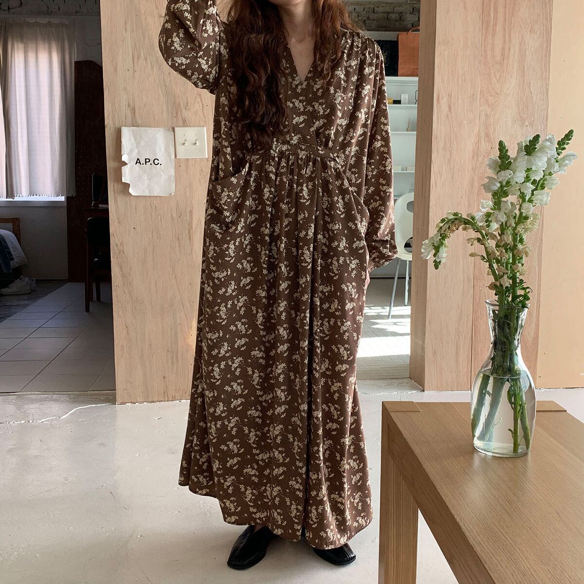 ワンピース レディース フレアワンピース マキシ 袖あり 長袖 ボリューム袖 Vネック カシュクール ワイド ポケット かわいい 大人可愛い きれいめ シンプル カジュアル 大人 上品 お洒落 大人女子 こなれ感 ラフ ガーリー 主役級 存在感 抜け感 花柄 総柄 フラワー 春 秋 20代 30代 40代 ママ 通勤 通学 デート お出かけ 女子会 休日 旅行 着回し 普段使い オルチャン 楽ちん 体系カバー 定番 トレンド 流行 インスタ映え ゆったり ゆる ブラウン ブラック