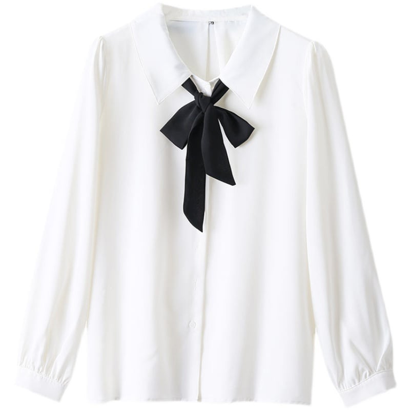 トップス レディース 白シャツ 白トップス シフォンブラウス ボウタイ 袖あり 長袖 襟付き リボン 前開き 大人可愛い きれいめ シンプル カジュアル ゴシック 大人 上品 お洒落 大人女子 こなれ感 ガーリー モード系 主役級 フォーマル 抜け感 無地 春 秋 20代 30代 40代 ママ 通勤 通学 デート お出かけ 女子会 休日 旅行 着回し 普段使い 重ね着 オルチャン モテ 定番 トレンド インスタ映え S M L XL 2XL 3XL 4XL 5XL 6XL 7XL ホワイト モノトーン