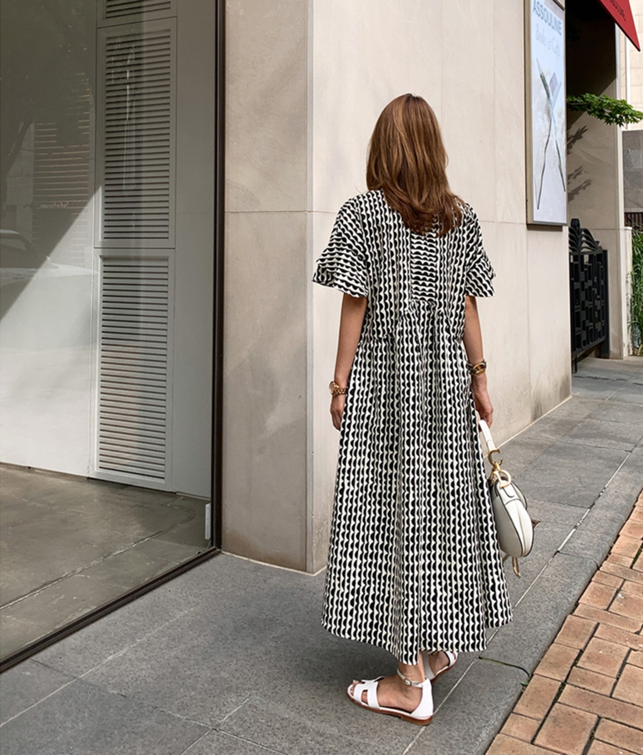 ワンピース 袖あり かわいい 大人可愛い きれいめ シンプル カジュアル 大人 上品 おしゃれ お洒落 かっこいい レトロ 大人女子 主役級 存在感 20代 レディース OL 学生 デート 女子会 着回し 普段使い ファッション コーデ スタイル モテ トレンド 流行 インスタ映え 柄 ブルー ブラック ロング丈