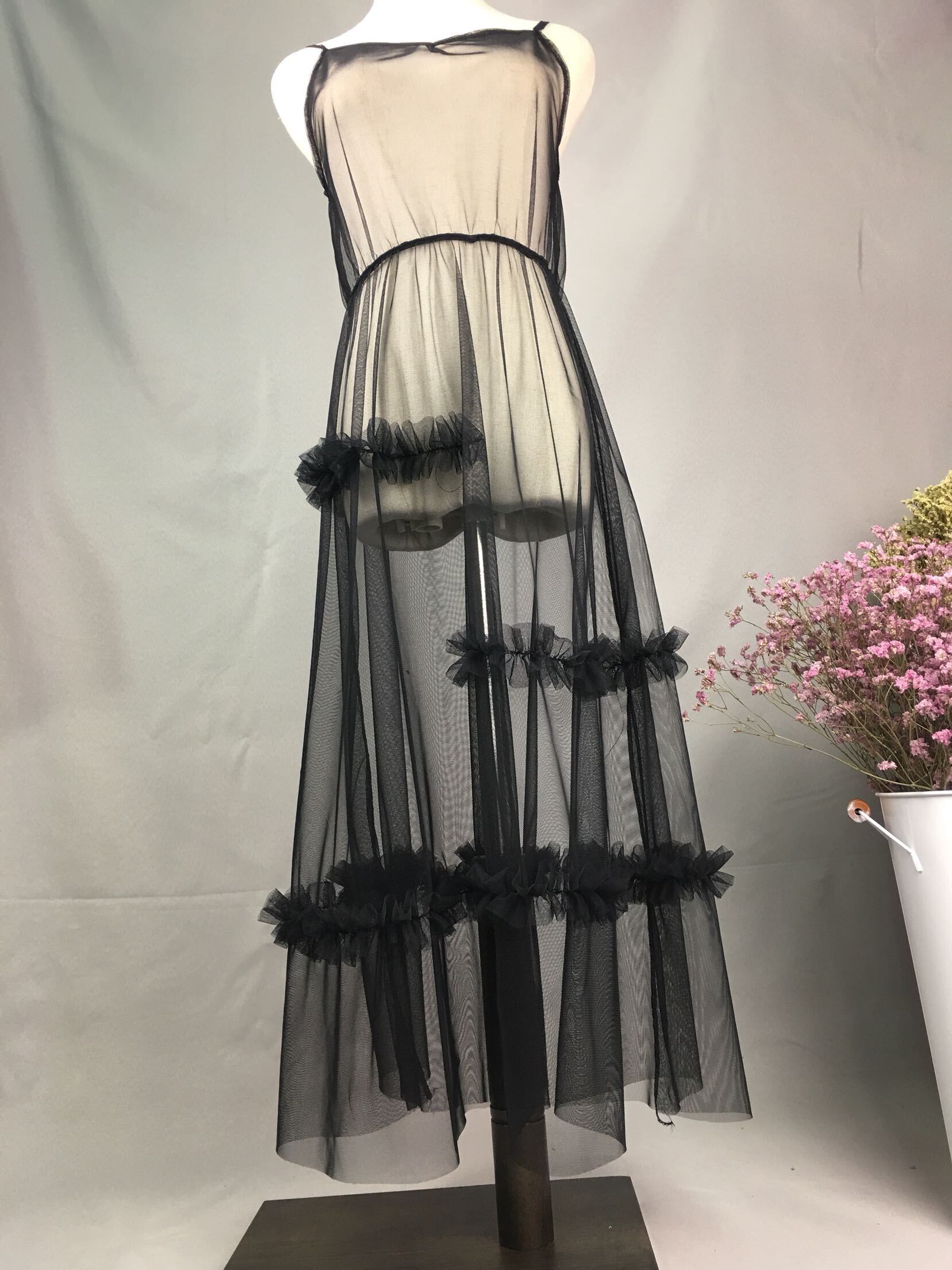 ナイトウェアとしてだけではなく、カジュアルスタイルの仕上げのレイヤードスタイルにも使えるシースルーワンピースです。