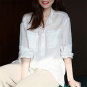 トップス シャツ 白シャツ 袖あり 長袖 襟付き ポケット 前開き 麻 リネン 薄手 大人可愛い シンプル カジュアル おしゃれ エスニック こなれ感 ラフ ルーズ 抜け感 無地 春 夏 レディース 女性用 ママ マタニティ 10代 20代 30代 40代 通学 デート お出かけ 公園デビュー 女子会 お泊まり 休日 アウトドア リゾート 旅行 海 プール 普段使い S M L XL 白 ホワイト 青 ブルー ベージュ