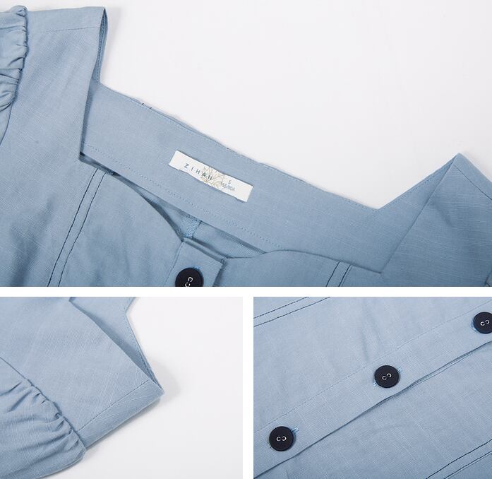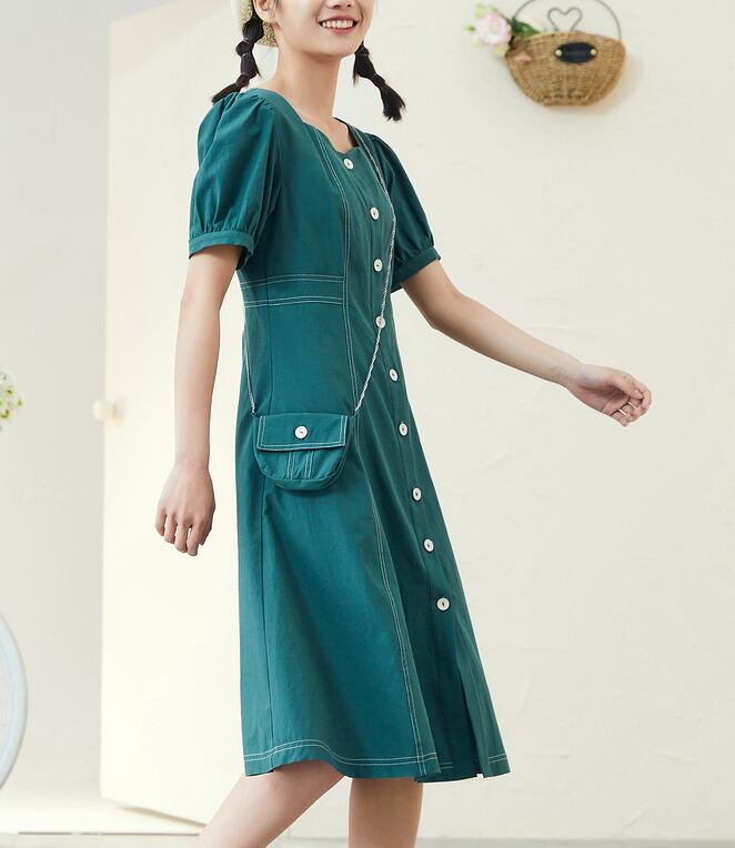 ワンピース 膝丈 ひざ丈 膝上 袖あり 半袖 パフスリーブ 襟なし ハートシェイプネック ウエストマーク バックコンシャス ハイウエスト 前開き かわいい ラブリー キュート ガーリー 主役級 存在感 無地 春 夏 10代 20代 レディース 女性用 女の子 デート イベント 旅行 普段使い XS S M L XL 白 ホワイト 青 ブルー 緑 グリーン