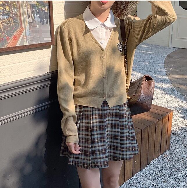 学生風 トップス アウター セーター カーディガン 袖あり 長袖 Vネック 刺繍 ボタン ニット かわいい 大人可愛い きれいめ シンプル カジュアル おしゃれ ルーズ 個性的 無地 春 秋 冬 入学式 10代 20代 30代 40代 学生 通学 デート お出かけ 着回し 重ね着 モテ 体系カバー ゆったり ゆる ブラック ベージュ