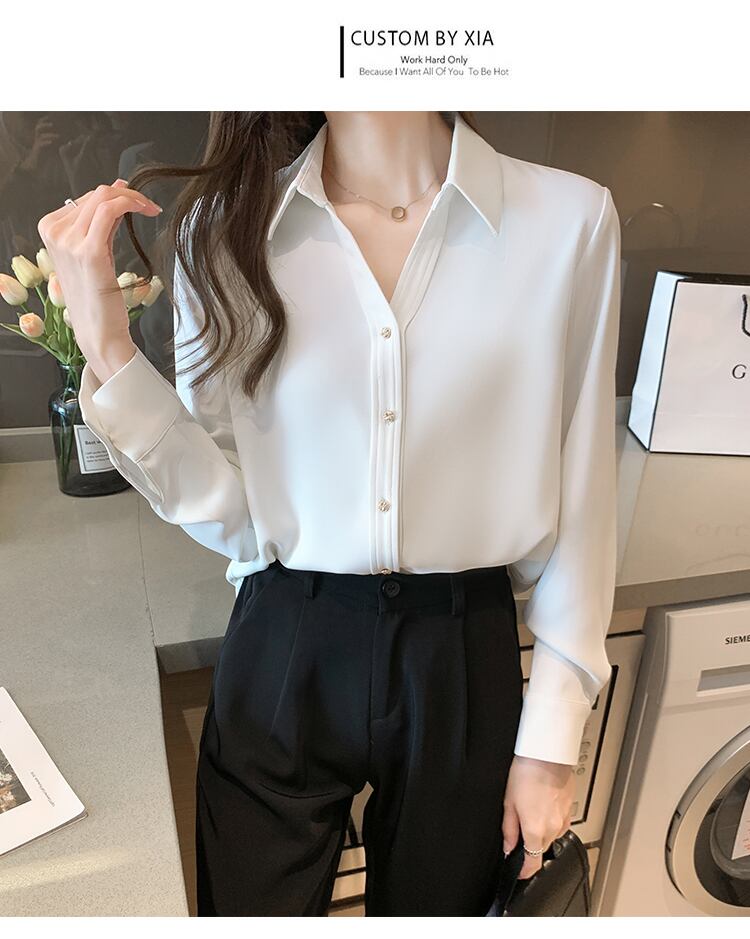トップス シャツ ブラウス 白シャツ トップス 袖あり 長袖 Vネック 襟付き 飾りボタン アセテート 裾イン 前開き きれいめ シンプル 大人 上品 おしゃれ かっこいい 大人女子 こなれ感 メンズライク クール フォーマル 無地 春 夏 秋 冬 オールシーズン シーズンレス 入学式 入園式 卒業式 卒園式 20代 30代 40代 レディース 女性用 ビジネス OL 通勤 学生 通学 リクルート 就活 定番 S M L XL 2XL 白 ホワイト ブラック 茶色 アラサー アラフォー 着回し