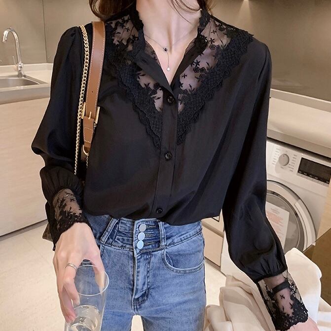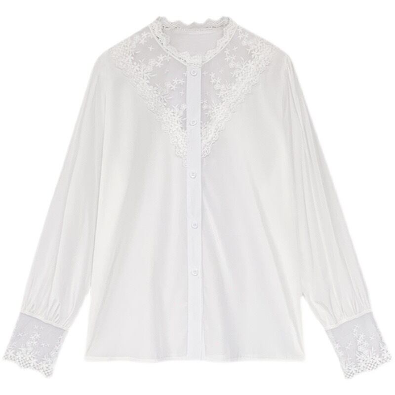 トップス シャツ レギュラー丈 袖あり 長袖 スタンドカラー ルーズ ストレート レース 前開き 透け感 シースルー 薄手 大人可愛い きれいめ シンプル カジュアル 大人 上品 お洒落 かっこいい レトロ こなれ感 ラフ キュート エレガント とろみ感 抜け感 無地 春 10代 20代 30代 40代 レディース デート お出かけ 女子会 お泊まり 休日 旅行 ホテル ガーデン レストラン ショッピング 普段使い 韓国系 オルチャン モテ トレンド 流行 S M L XL 2XL ホワイト ブラック
