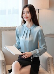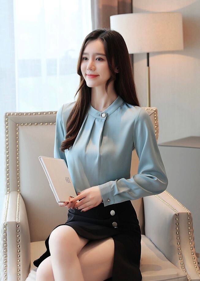 トップス シャツ 袖あり 長袖 スタンドカラー スリム 細身 シフォン プルオーバー 薄手 かわいい 大人可愛い きれいめ シンプル カジュアル 大人 上品 おしゃれ お洒落 かっこいい レトロ 大人女子 こなれ感 エレガント 主役級 存在感 とろみ感 抜け感 無地 秋 20代 30代 40代 レディース ビジネス OL 通勤 お出かけ 女子会 ホテル レストラン 韓国系 オルチャン ファッション コーデ スタイル モテ トレンド 流行 インスタ映え S M L XL 2XL ライトブルー シャンパン