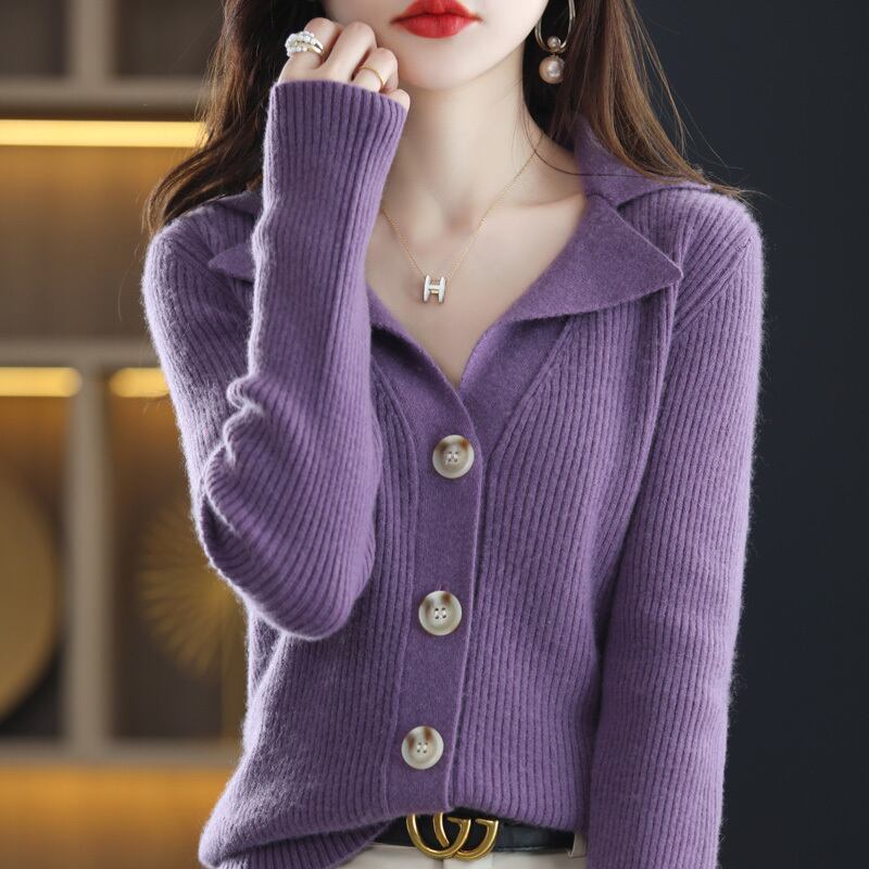 トップス カーディガン レギュラー丈 袖あり 長袖 襟付き ルーズ 前開き ニット 大人可愛い きれいめ シンプル カジュアル 大人 上品 お洒落 かっこいい レトロ 大人女子 こなれ感 ラフ クール モード系 存在感 とろみ感 抜け感 無地 春 秋 20代 30代 40代 50代 60代 レディース OL 通勤 学生 通学 デート お出かけ 女子会 休日 レストラン ショッピング 普段使い 韓国系 オルチャン コーデ 楽ちん 暖かい モテ トレンド 流行 ワンサイズ グリーン パープル グレー ベージュ