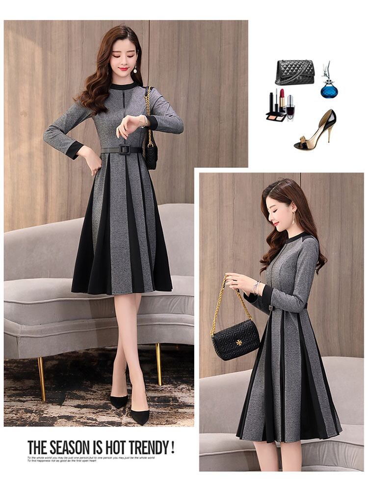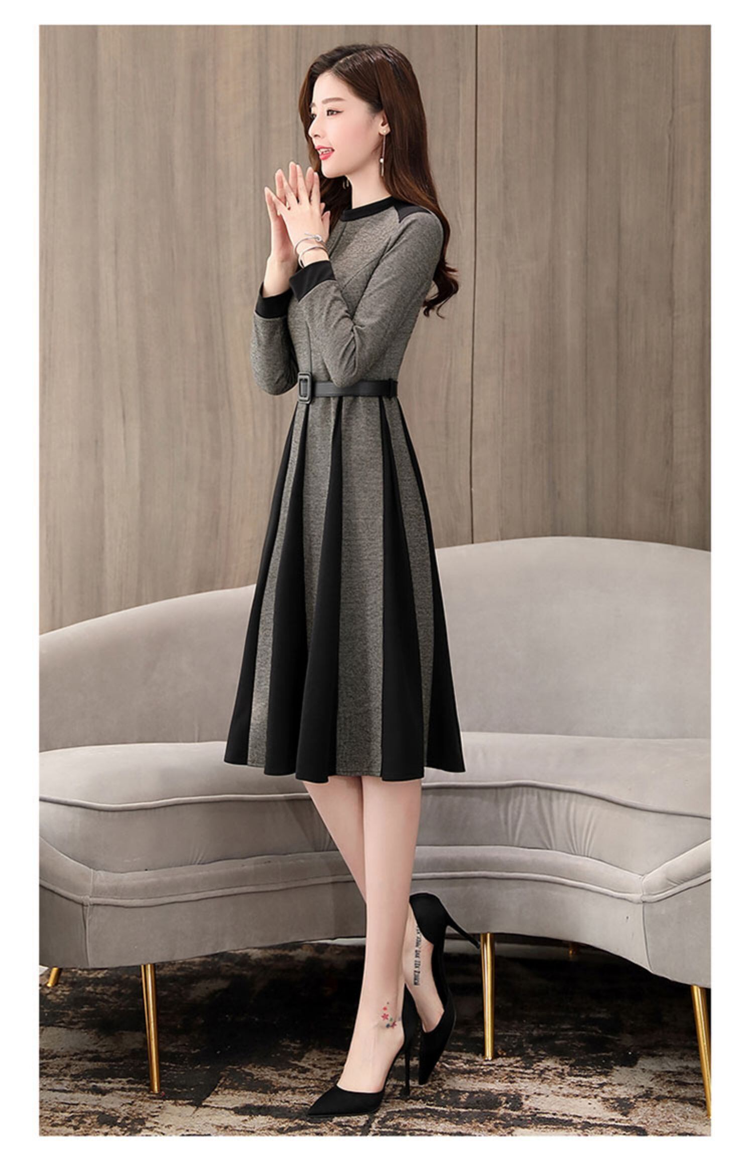 ワンピース デート フレアワンピース 膝丈 ひざ丈 袖あり 長袖 ラウンドネック 襟なし フレア Aライン ウエストマーク ポリエステル きれいめ 大人 上品 おしゃれ お洒落 大人女子 エレガント モダン 秋 冬 入学式 入園式 卒業式 卒園式 二次会 20代 30代 40代 レディース 女性用 ママ OL 通勤 学生 通学 デート お出かけ 女子会 休日 レストラン ショッピング 韓国系 オルチャン ファッション コーデ スタイル モテ 脚長 トレンド M L XL 2XL バイカラー 切り替え