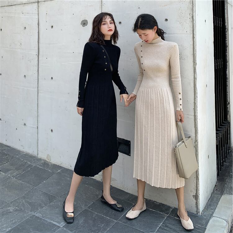 ワンピース デート ミモレ ミモレ丈 袖あり 長袖 スリム タイト かわいい 大人可愛い きれいめ シンプル カジュアル 大人 上品 おしゃれ お洒落 かっこいい レトロ 大人女子 こなれ感 キュート ガーリー ルーズ 個性的 クール 主役級 存在感 春 秋 冬 10代 20代 30代 レディース 女性用 女の子 OL 学生 女子会 休日 イベント 着回し 普段使い 重ね着 ファッション コーデ スタイル 楽ちん トレンド 流行 インスタ映え S M L XL アプリコット ブラック